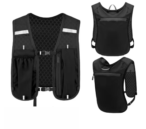 Chaleco de running reflectante con capacidad de 4L perfecto para llevar llaves, movil, botella pequeña, mapas, toalla, manta termica, pañuelos...